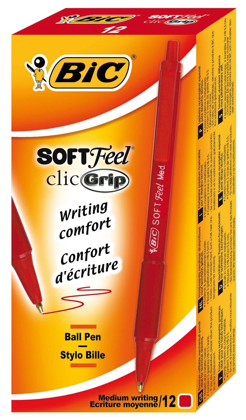 BIC Stylo à bille rétractable Soft Feel Clic grip, rouge L Voir site | ![]()