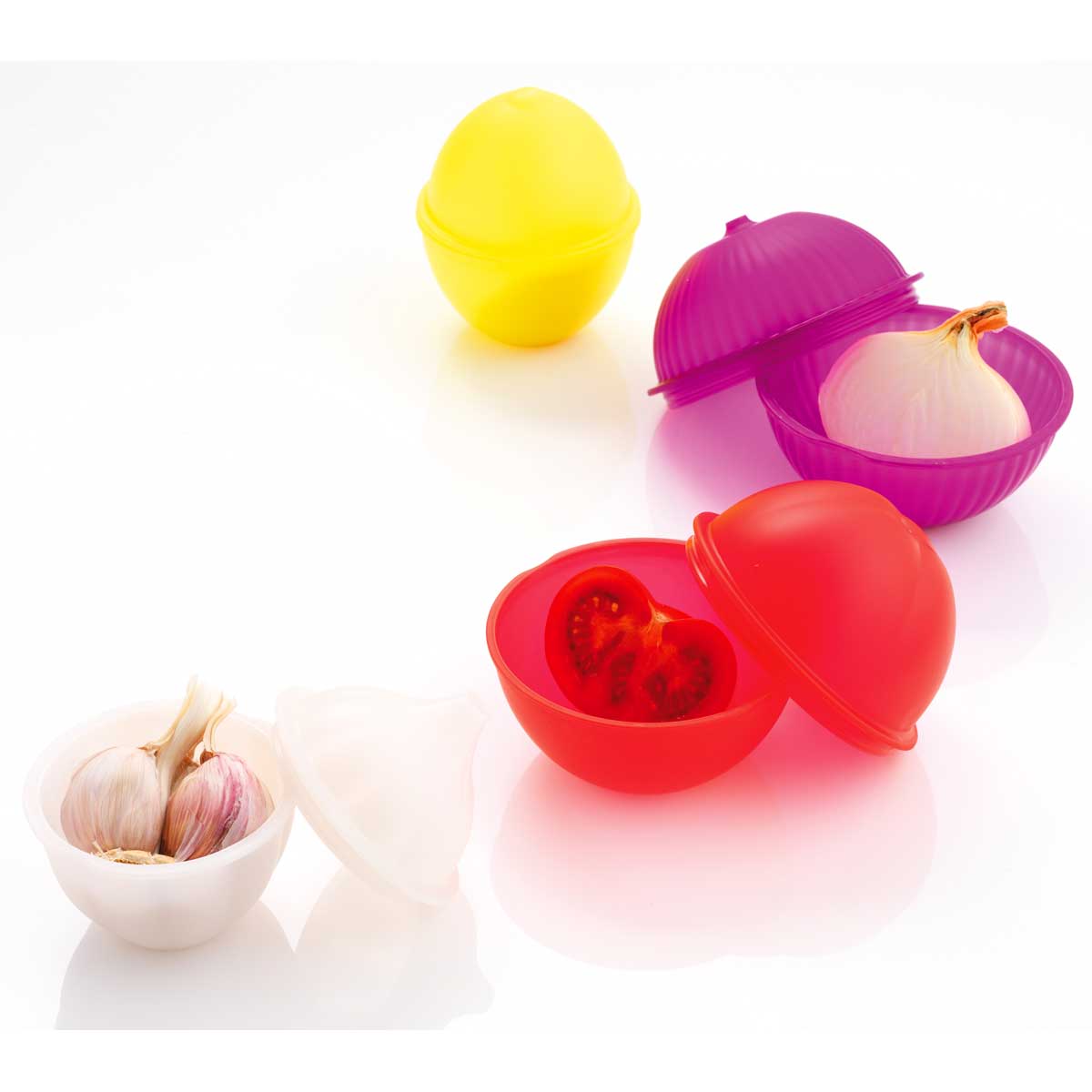 MASTRAD - Boîtes de conservation légumes - Lot de 4 Formes: Ail, Oignon, Citron, Tomate - Emboîtables - Lave Vaisselle - F91354, Vert L En stock | ![]()