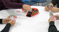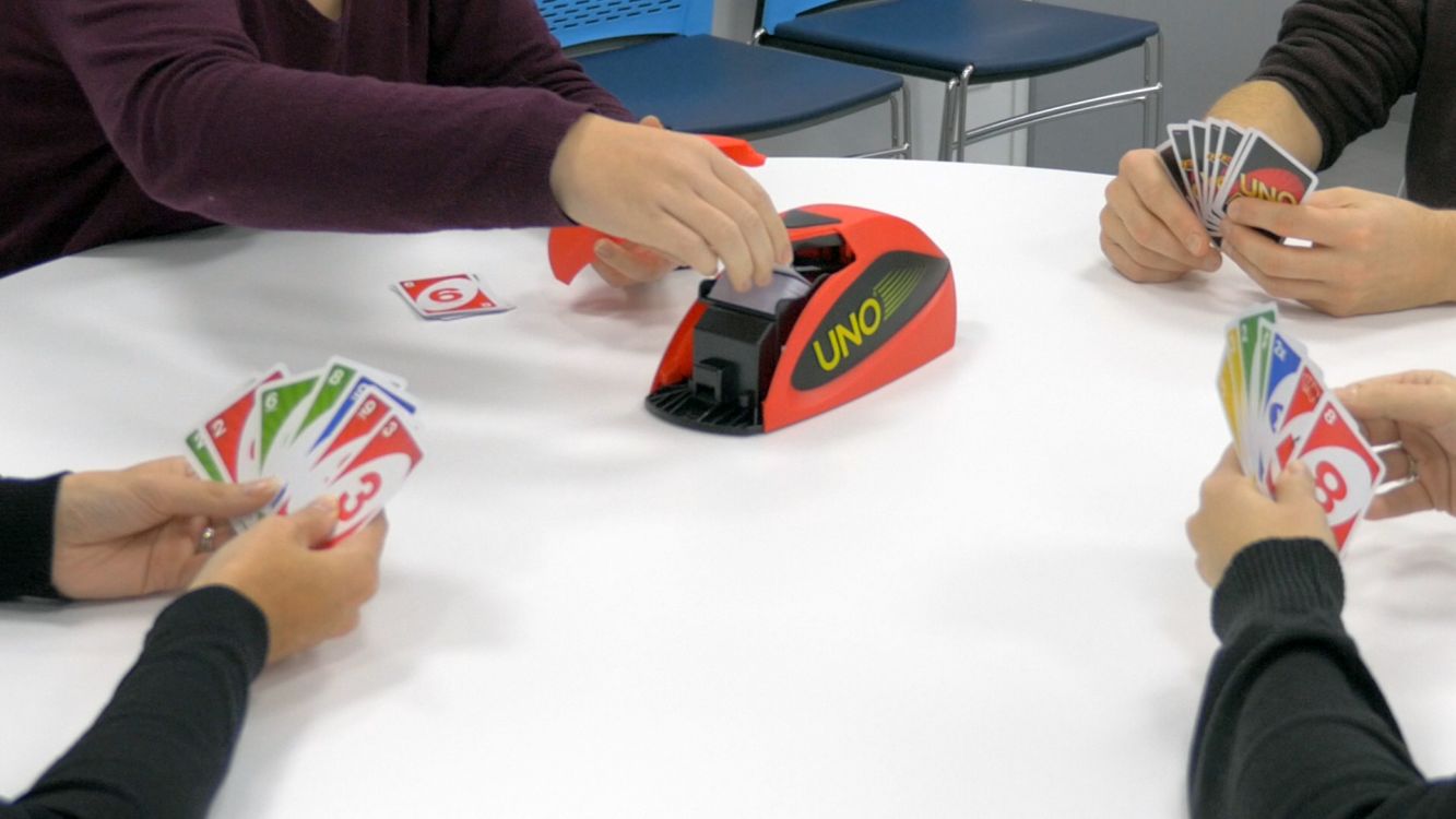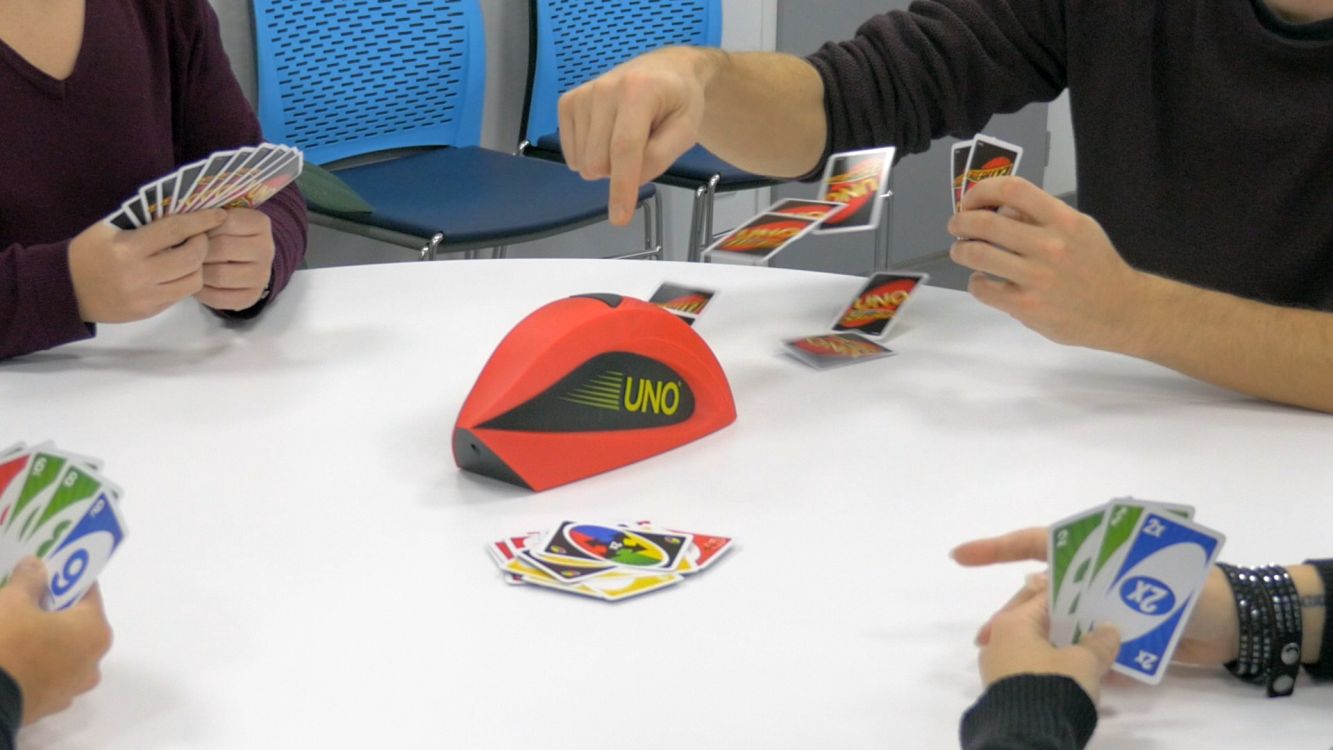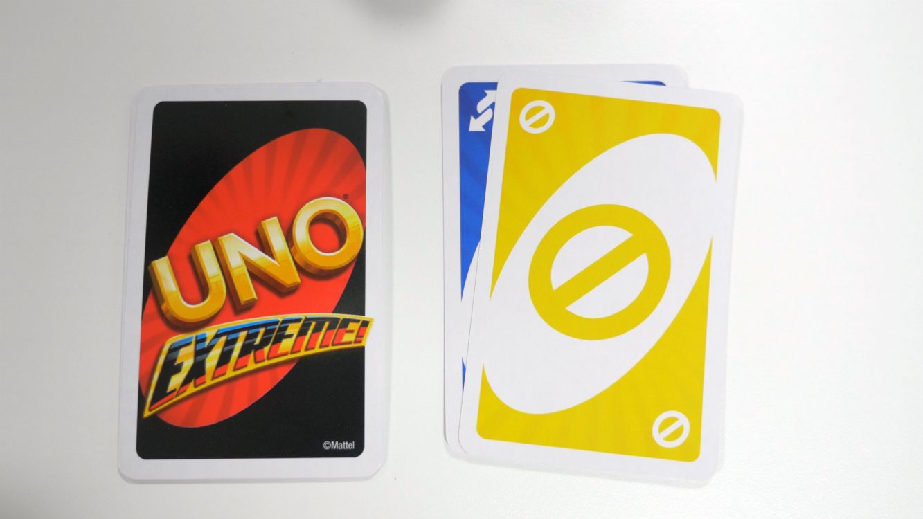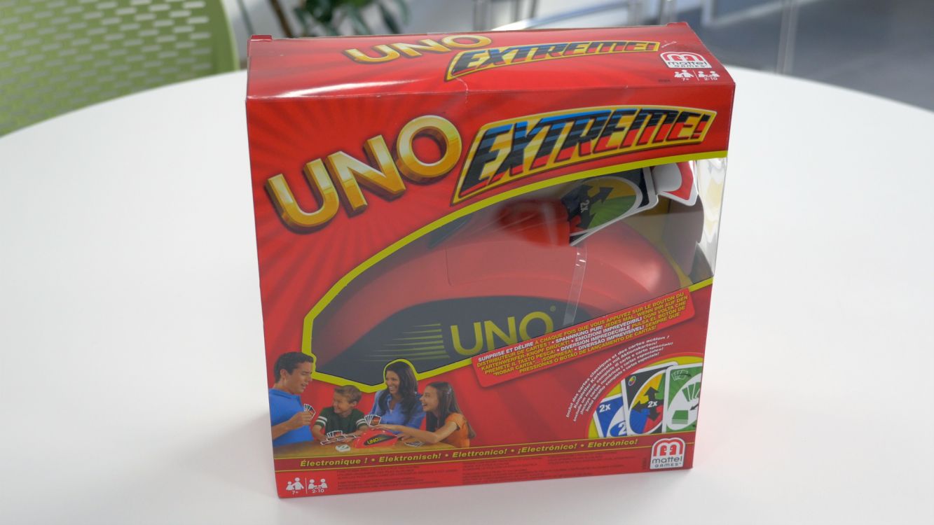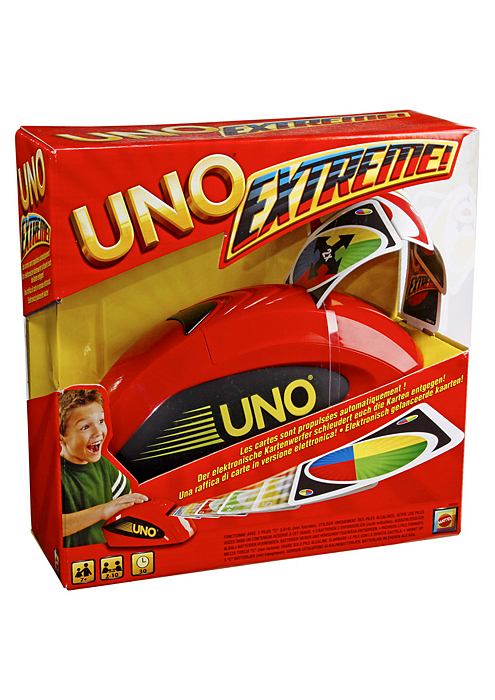 Le célèbre jeu de cartes américain de la marque Mattel revient dans une nouvelle version. Uno Extreme intègre une rampe de lancement qui peut projeter de façon aléatoire un nombre de cartes lorsque c’est à son tour de piocher. Adapté pour les enfants à partir de 7 ans, le but de Uno Extreme est comme les versions précédentes, de ne plus avoir de cartes en sa possession et également d’accumuler 500 points pour gagner la partie.