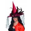 Smiffys Chapeau sorcière, Rouge foncé, avec plumes & tulle, deluxe Halloween L En stock | ![]()
