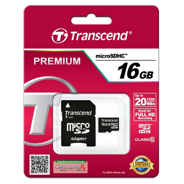 Transcend Carte Mémoire microSDXC 16 Go Classe 10 (Premium) TS16GUSDHC10 (get goods, neuf) L En stock | ![]()