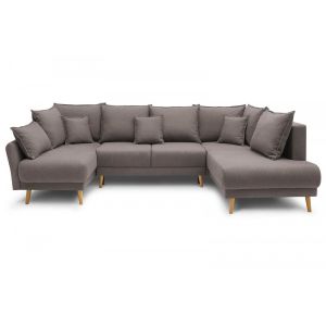 Image de Bobochic Canapé panoramique XXL convertible coffre MIA Angle gauche Taupe