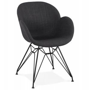 Image de Alter Ego Chaise design 'PLANET' en tissu gris foncé avec pieds en métal noir