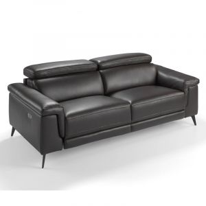 Image de Canapé droit 3 places en cuir de vac tte repose tête réglable