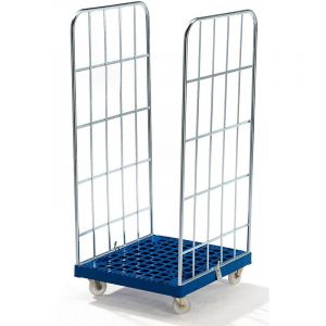 Image de Certeo Roll-conteneur MODULAIRE - socle roulant en plastique - grillagé sur 2 côtés, socle bleu foncé - Couleur de la platine de la roue: Bleu gentiane RAL