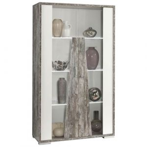 Vitrine 2 Portes Laqué Blanc et Effet Bois Taupe - DENYS - ALTOBUY L Voir site | ![]()