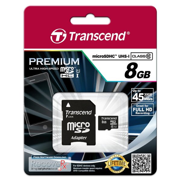 TRANSCEND Premium - Carte mémoire flash (adaptateur microSDHC - SD inclus(e)) - 8 Go - Class 10 - 133x - micro SDHC L Voir site | ![]()