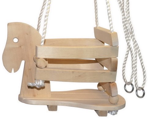 small foot 7190 Balançoire bébé "cheval" en bois, stable et sûr grâce à une bordure surélevée, à partir de 1,5 ans