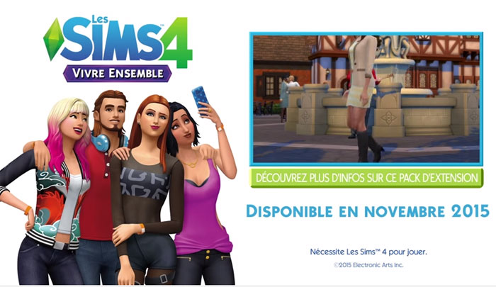 Les Sims 4 : Vivre ensemble est d'ores et déjà disponible en pré-commande chez certains marchands.