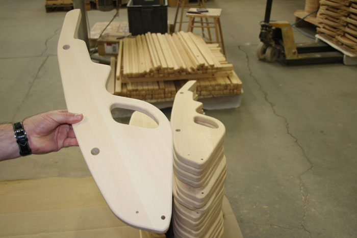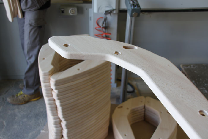 Disposant d'un équipement très à la pointe, pour une partie de notre activité, nous pouvons fabriquer des objets en bois pour le compte d'autres marques. Nous travaillons notamment pour une société qui fait du mobilier de loisirs, nous réalisons pour eux des ossatures de transat en bois.