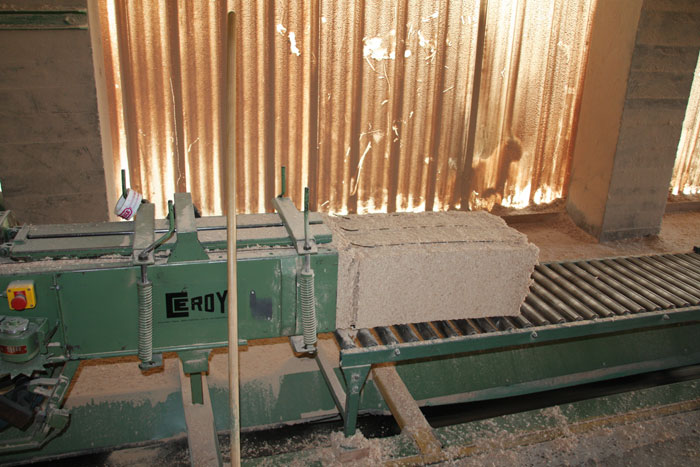 La machine qui façonne les cubes de litières, à partir des copeaux valorisables