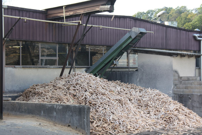 Les buchettes extraites de l'usine, qui seront vendues pour faire du bois de chauffe