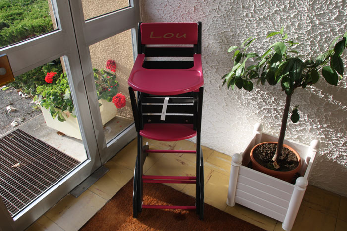 G.C. C'est la chaise haute traditionnelle et transformable. On la connaissait déjà du temps de nos grands-pères et de nos grand-mères.